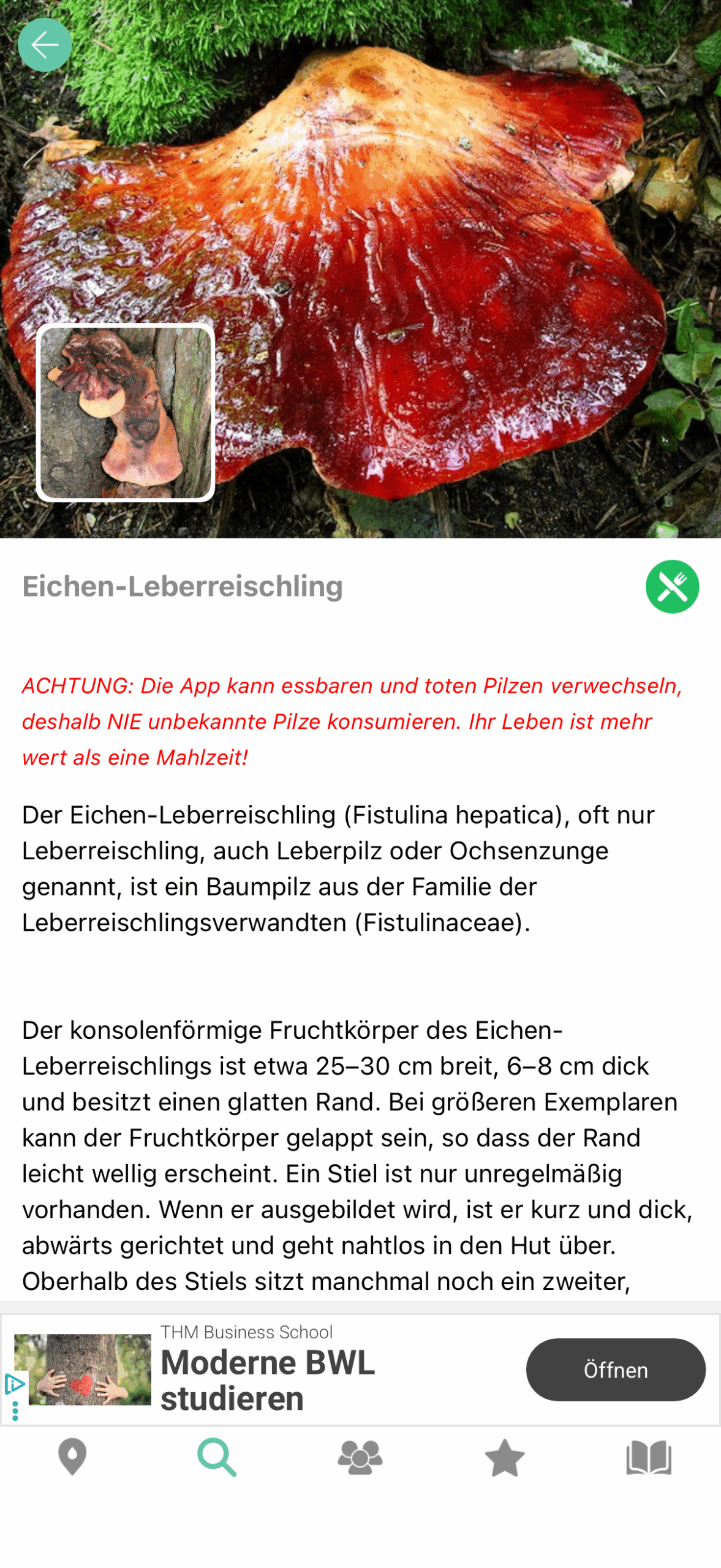 Erneut einen großen Baumpilz gefunden, von dem die App sagt, er sei essbar.