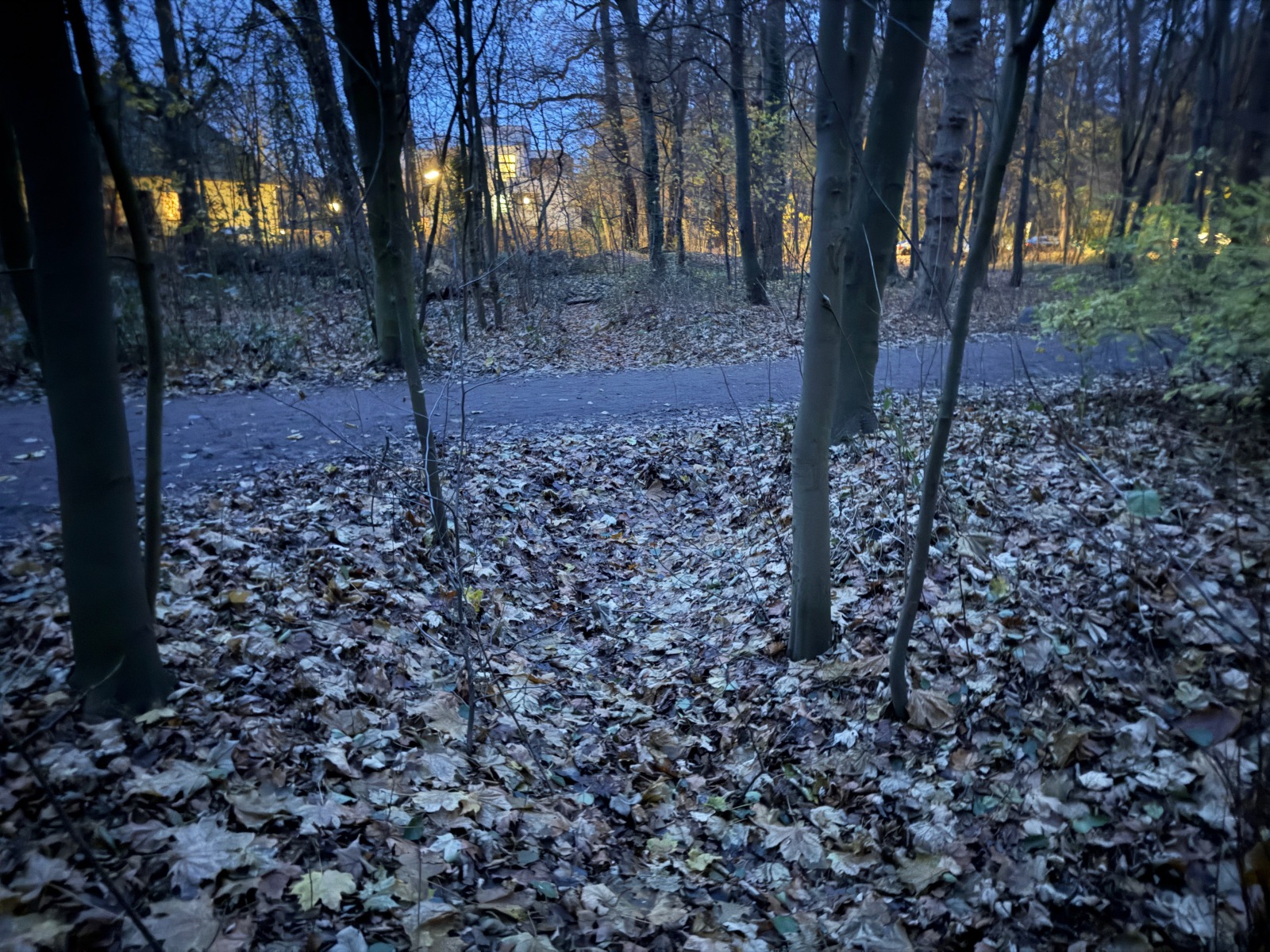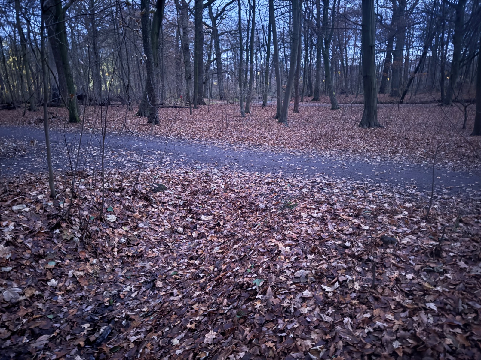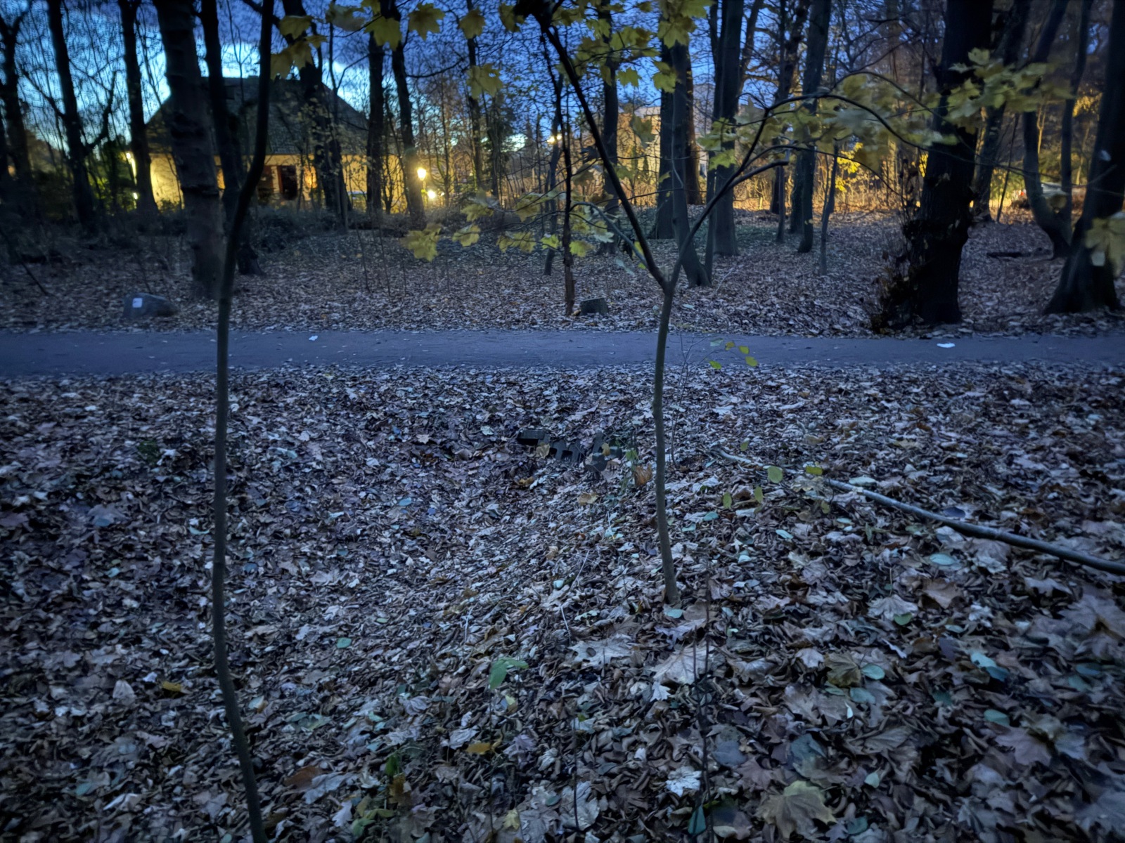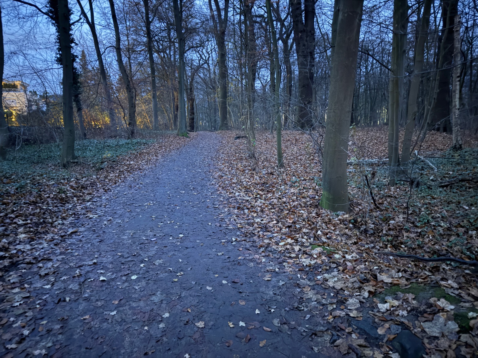 Gehölz 2 hat mehrere, und zwar gewohnte, Brücken, die sich schon optisch von den Spazierwegen abheben, da sie auch jeweils ein Geländer haben. Hier führt der Gehölzgraben auch in Süd-Nord-Richtung eigentlich immer Wasser, denn dieses wird über ein Pumpenhäuschen weiter südlich in Marienthal unter der Autobahn hindurch von Horn aus heraufgepumpt.