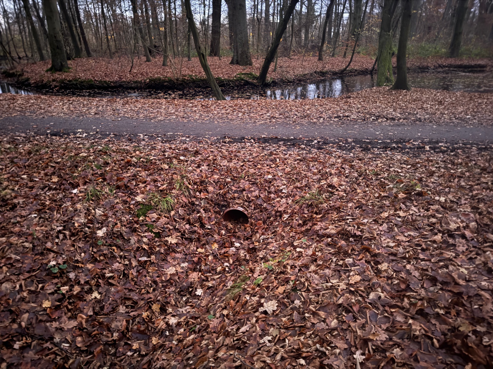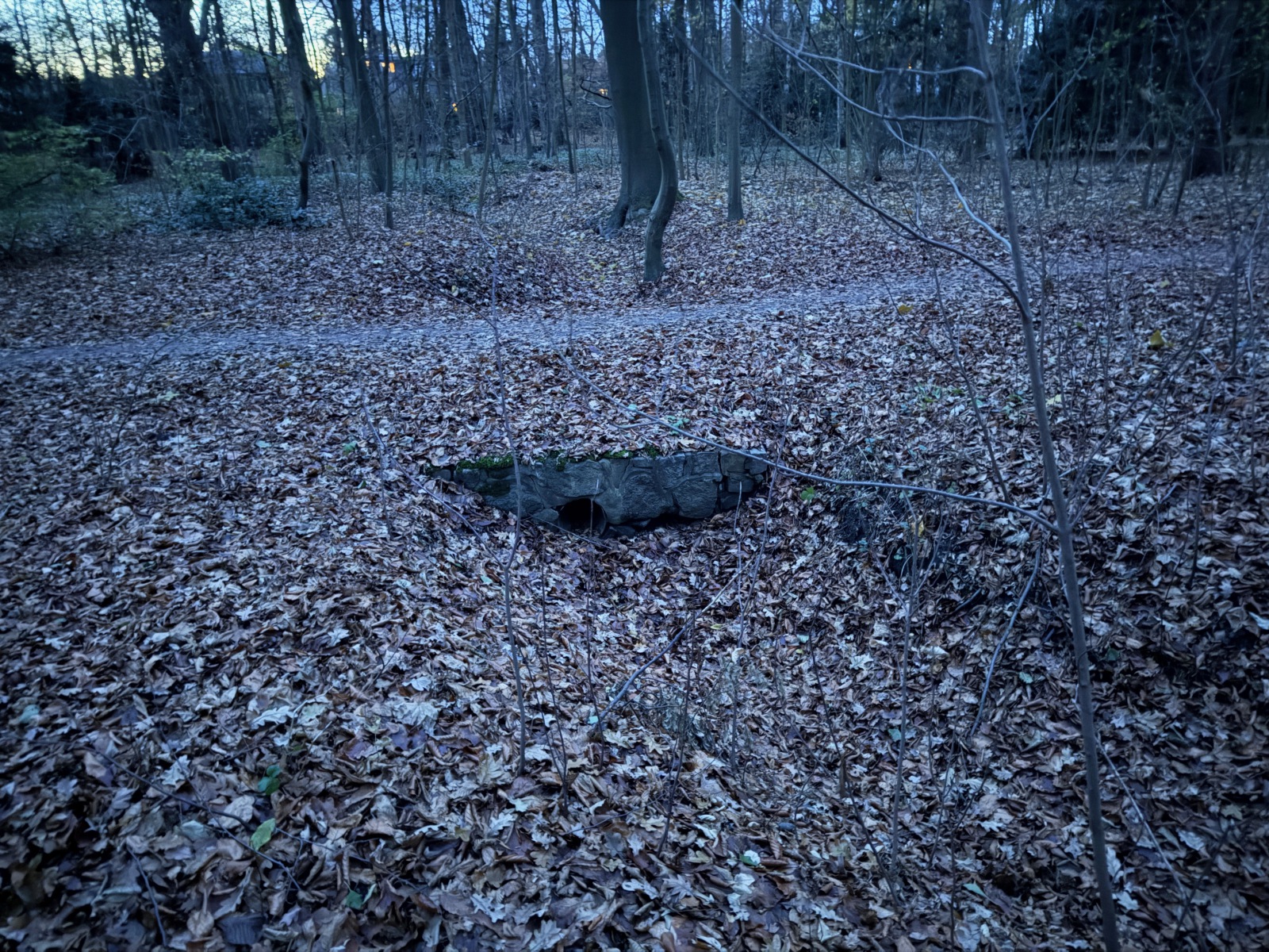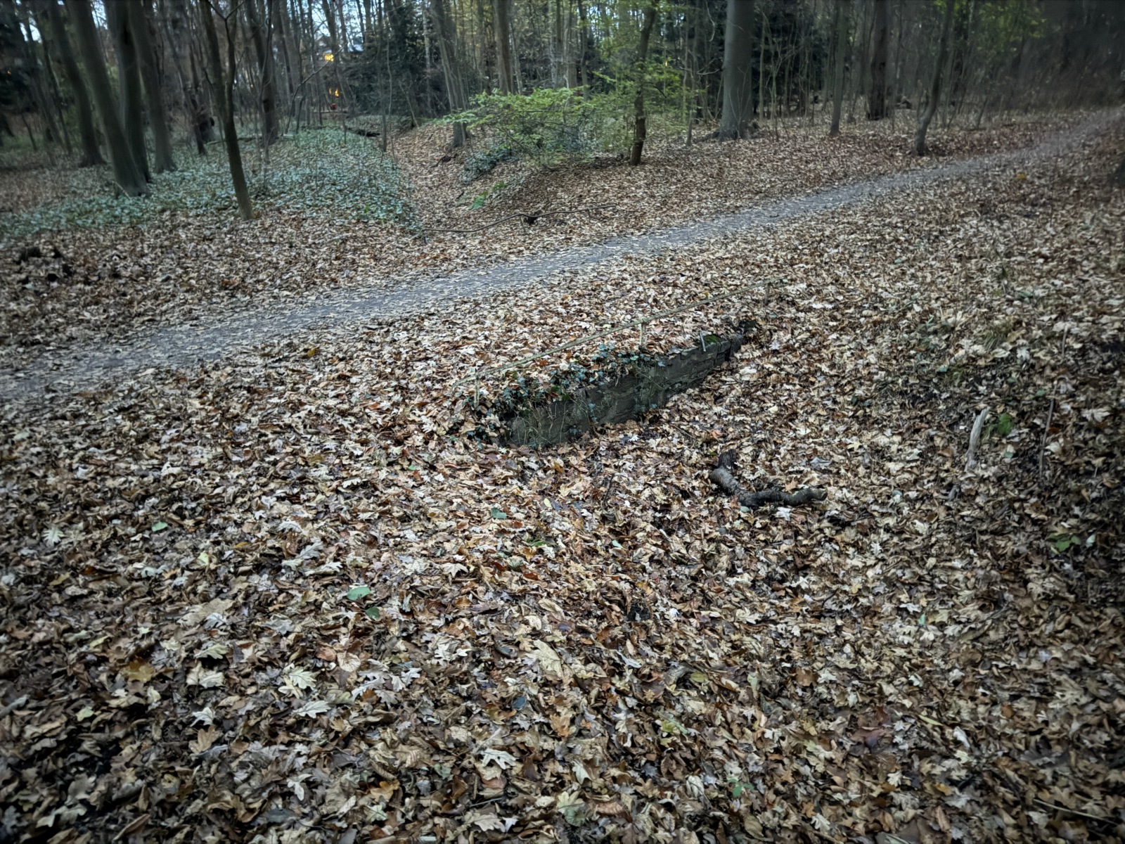 Im zweiten Gehölz sind sie ganz offensichtlich zu bemerken, besonders über den Teil des Gehölzgrabens, der sein Wasser aus dem Süden aus Horn bezieht und eigentlich immer Wasser führt. Aber in den restlichen Gehölzen? Meistens bemerken Sie die Brücken gar nicht, denn sie sind ebenerdig, und doch laufen Sie viele Male über (manchmal) wasserführende Gehölzgräben.