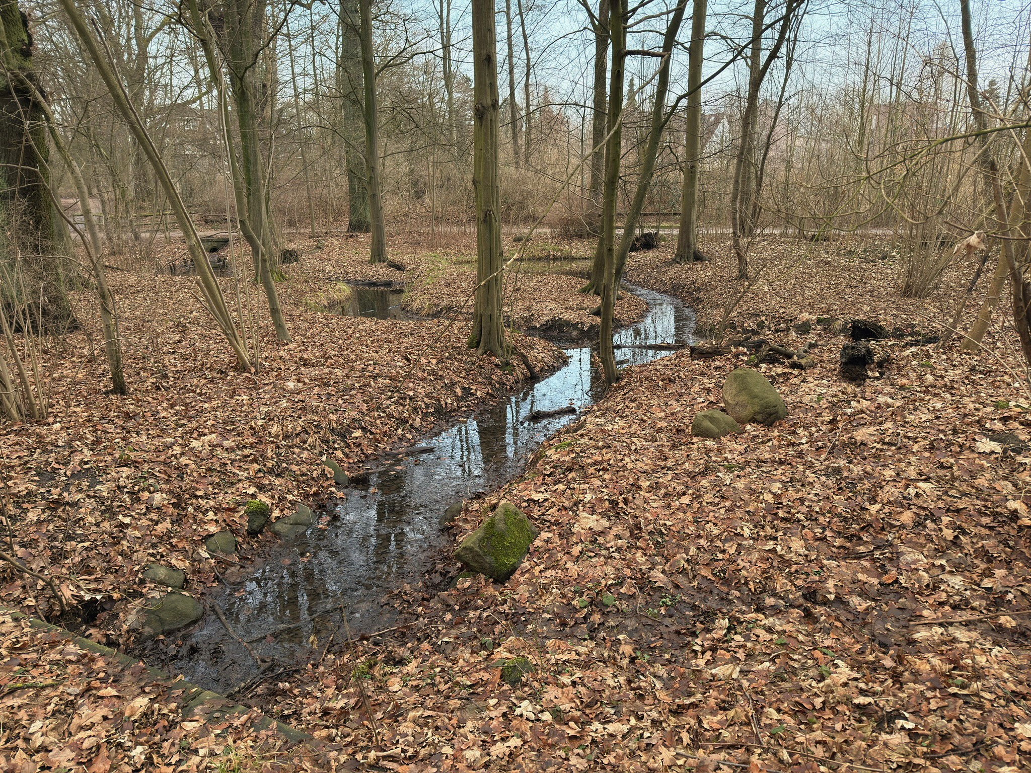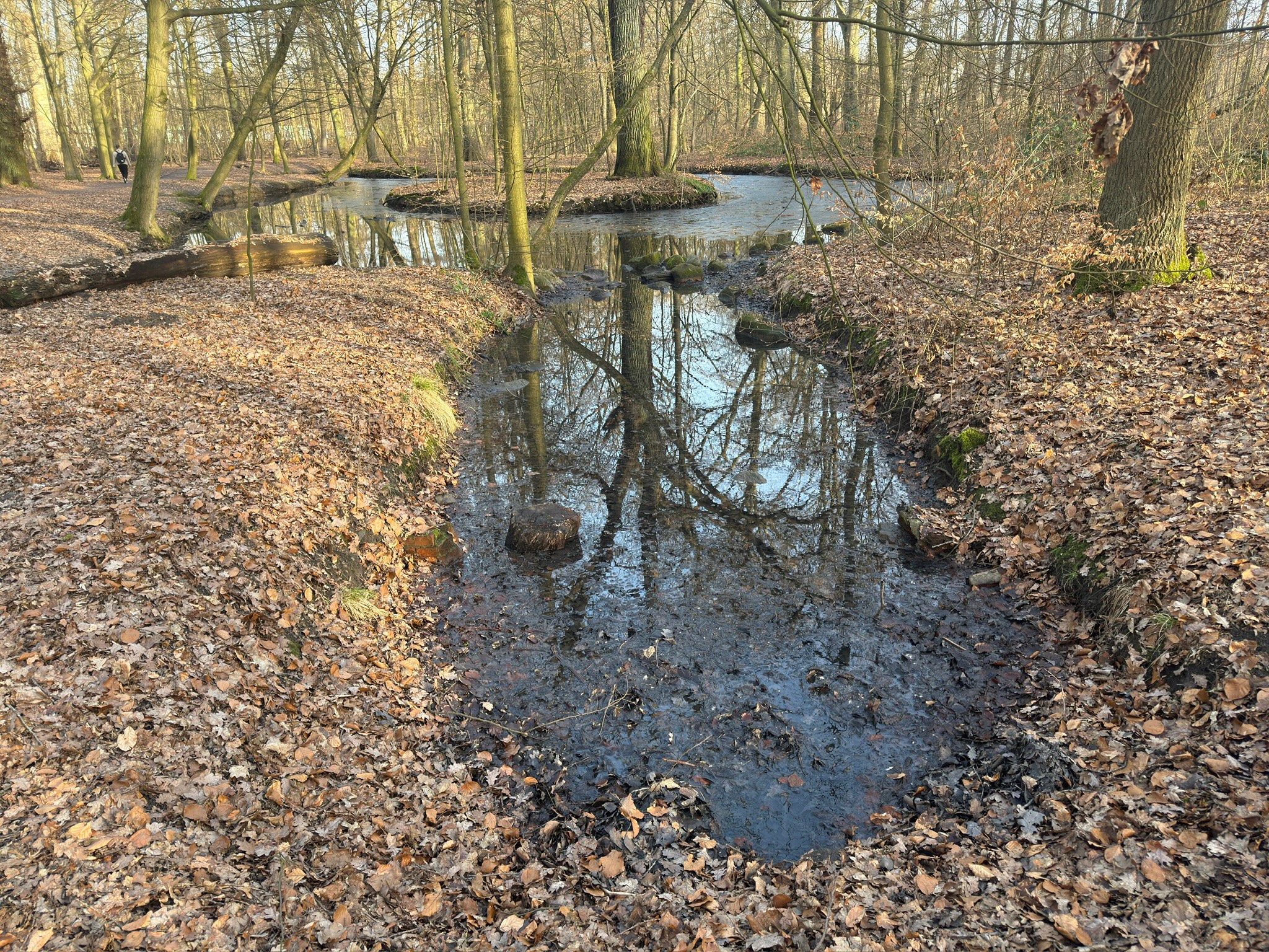 Das Eis in den Gehölzgräben hat den höheren Temperaturen nichts entgegenzusetzen.